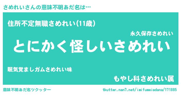 | 女子向けラノベタイトル風あだ名 | 『さめれいの卵を拾いまして』 |