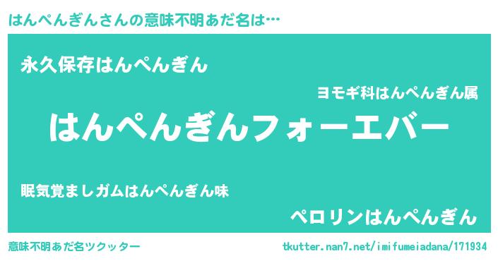 | 欧米人風あだ名 | 『はんぺんぎんクリステル』 |