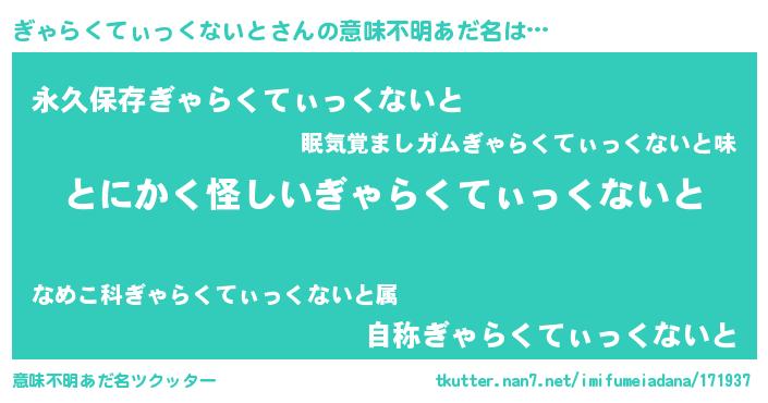 | 男性向けラノベタイトル風あだ名 | 『うちのぎゃらくてぃっくないとが世界を掌握している!』 |