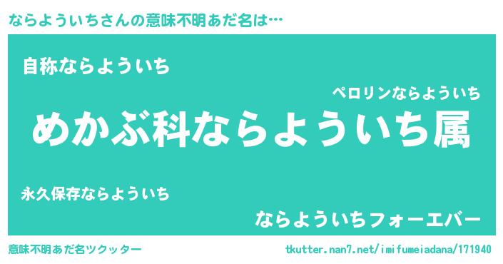 | 男性向けラノベタイトル風あだ名 | 『ナラヨウイチスレイヤー』 |