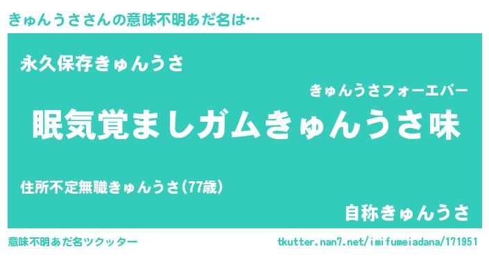 | 欧米人風あだ名 | 『ダニエルきゅんうさ』 |