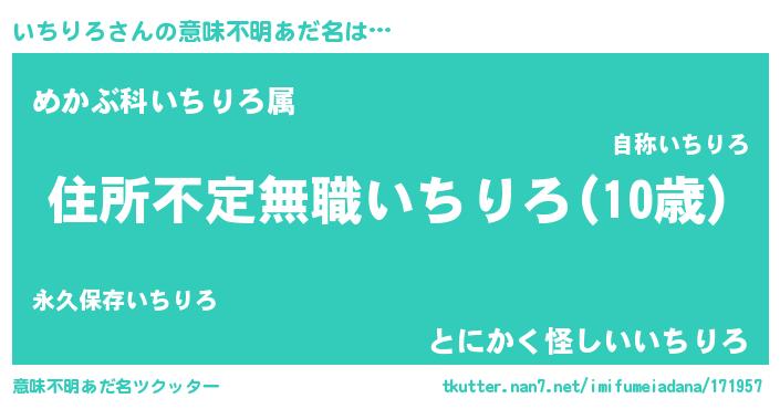 | ヘコむあだ名 | 『いちを』『いちりろ(震え声)』 |
