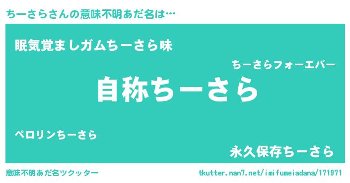 | 女子向けラノベタイトル風あだ名 | 『ちーさらアンティーク』 |