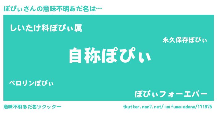 | 肩書あだ名 | 『ぽぴぃ総統』『ぽぴぃ中将』 |