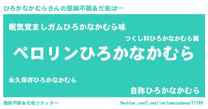 | 男性向けラノベタイトル風あだ名 | 『ひろかなかむらの憂鬱』 |