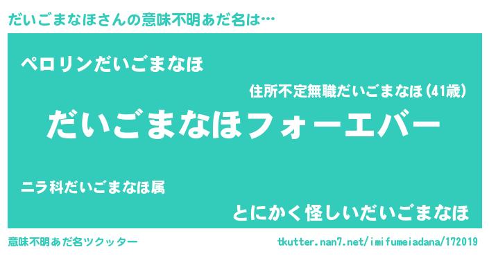 | ファンタジー風あだ名 | 『エターナルダイゴマナホー』 |