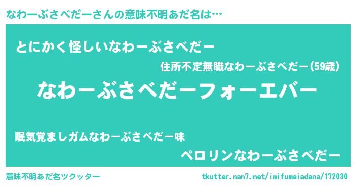 | 欧米人風あだ名 | 『なわーぶさべだークリステル』 |