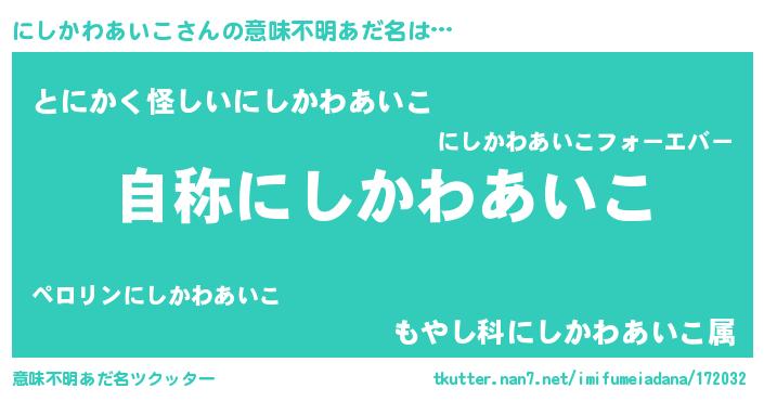 | 肩書あだ名 | 『にしかわあいこ閣下』 |