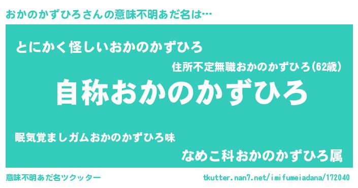 | 男性向けラノベタイトル風あだ名 | 『Re:おかのかずひろから始める異世界生活』 |