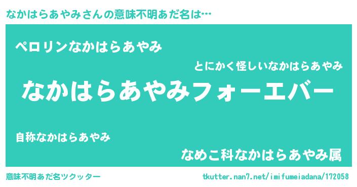 | ヒーロー風カッコイイあだ名 | 『ウルトラなかはらあやみマン』 |