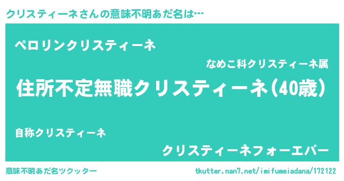 | 欧米人風あだ名 | 『ダレノガレクリスティーネ』 |
