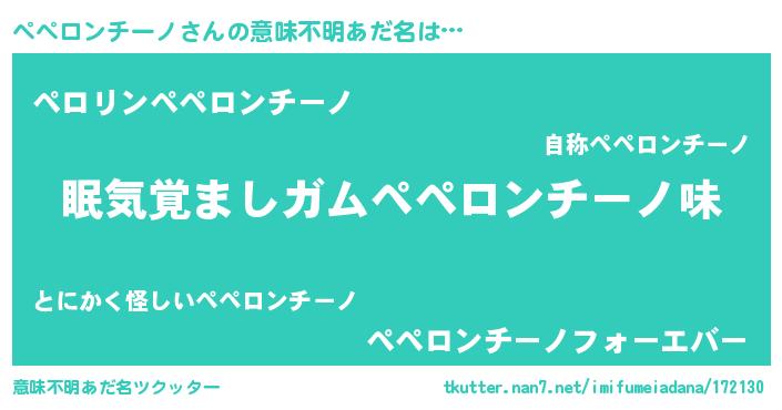 | 男性向けラノベタイトル風あだ名 | 『ノーゲーム・ノーペペロンチーノ』 |