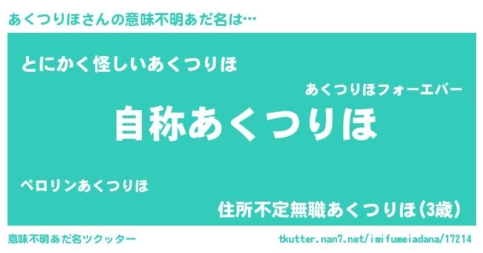 | 肩書あだ名 | 『あくつりほ総統』『あくつりほリーダー』 |