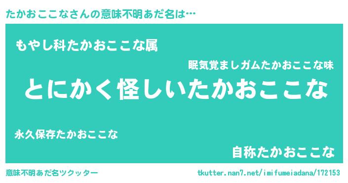 | 胡散臭い通販商品みたいなあだ名 | 『信頼と実績のサプリメント…その名も「たかおここな」』 |