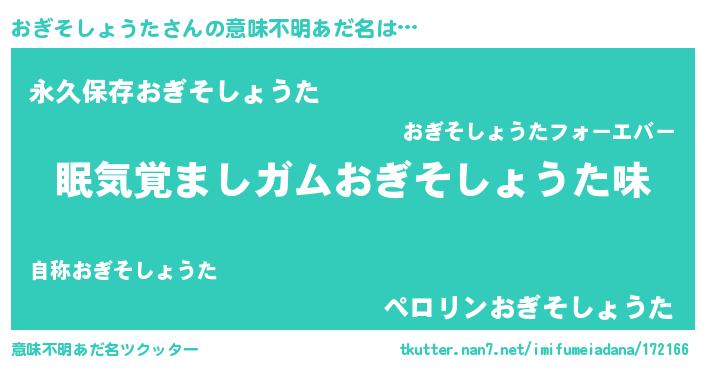 | ヒーロー風カッコイイあだ名 | 『慈愛の使者おぎそしょうた』 |