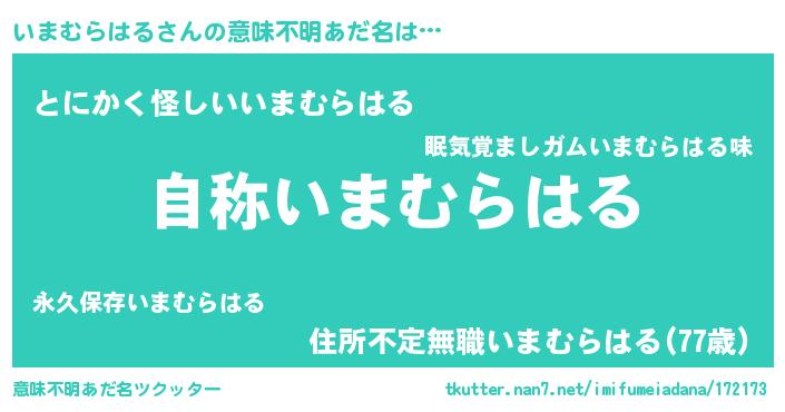 | ヘコむあだ名 | 『いまっ子』『いまむらはる(苦笑)』 |