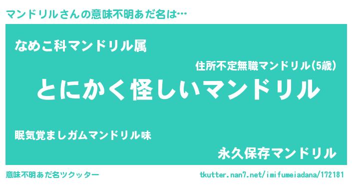 | 胡散臭い通販商品みたいなあだ名 | 『信頼と実績のサプリメント…その名も「マンドリル」』 |