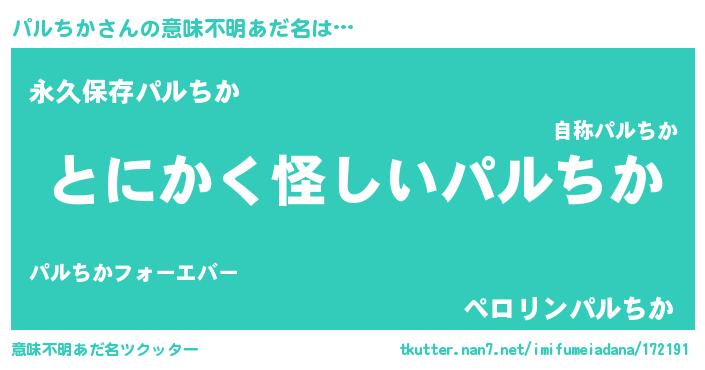 | 欧米人風あだ名 | 『ウサインパルちか』『マイケルパルちか』 |