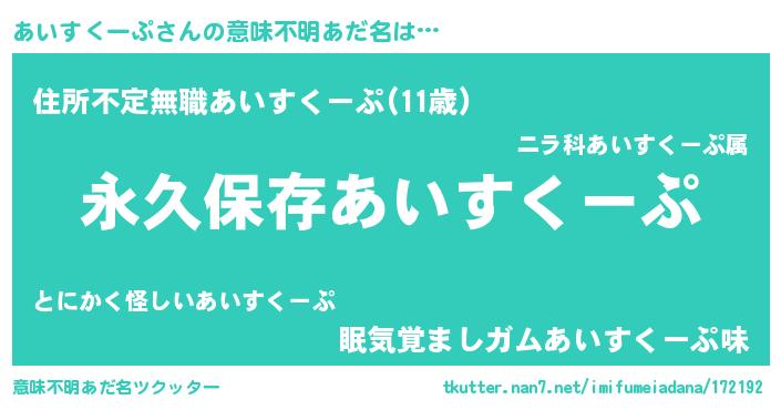 | 男性向けラノベタイトル風あだ名 | 『あいすくーぷという概念が存在しない退屈な世界 』 |