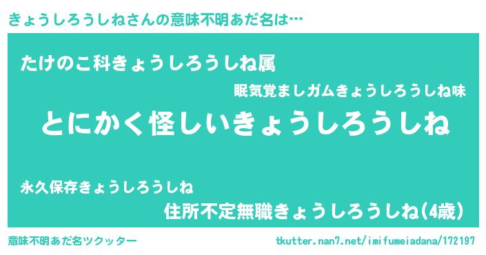 | ヘコむあだ名 | 『きょぷりん』『きょうしろうしね(笑)』 |