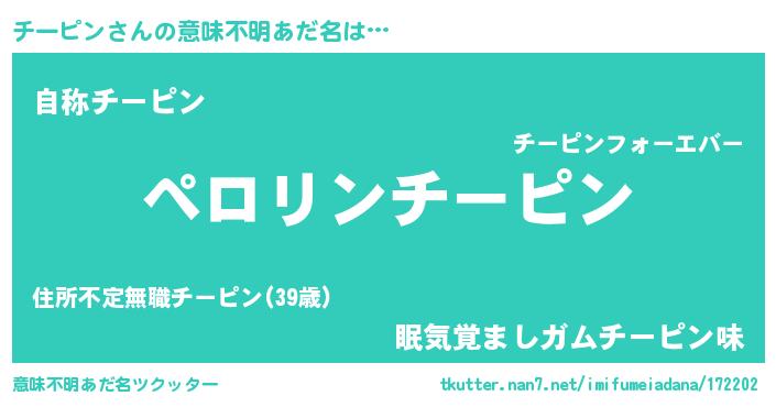 | 男性向けラノベタイトル風あだ名 | 『チーピンの憂鬱』 |
