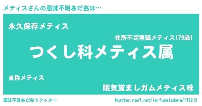 | ヘコむあだ名 | 『メティス(爆)』『メテもー』 |
