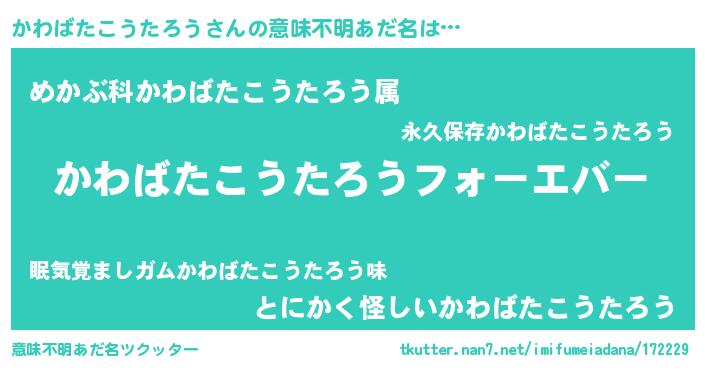 | 男性向けラノベタイトル風あだ名 | 『やはりかわばたこうたろうの青春ラブコメはまちがっている 』 |