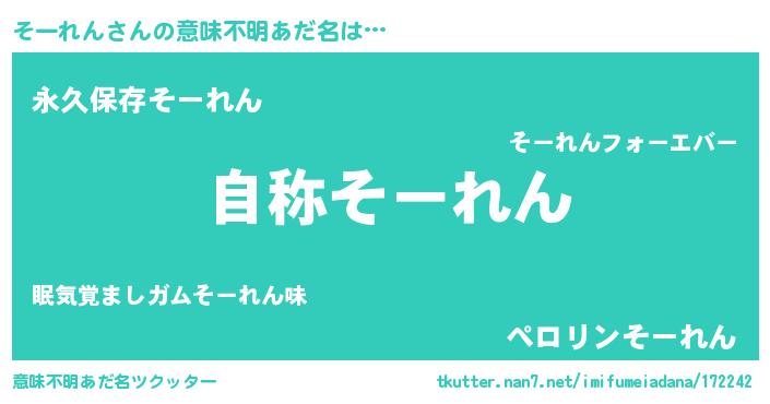 | ヘコむあだ名 | 『そーれん(笑)』『そーにー』『豆乳』 |