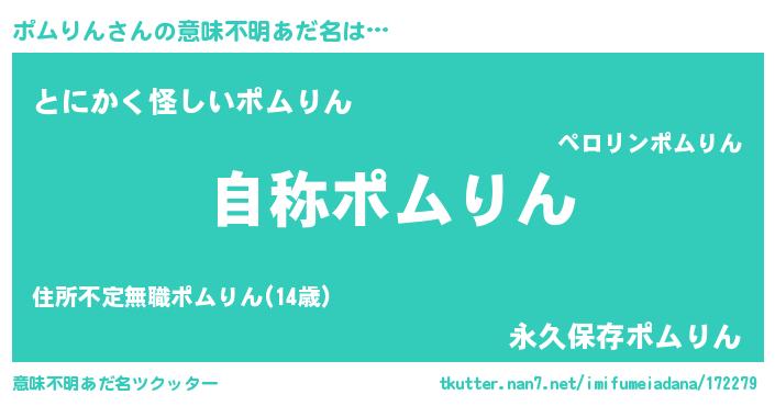 | 男性向けラノベタイトル風あだ名 | 『Re:ポムりんから始める異世界生活』 |