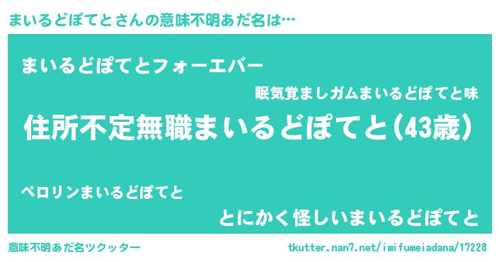 | ポケモン風あだ名 | 『マーイイ』『マイルダネ』 |