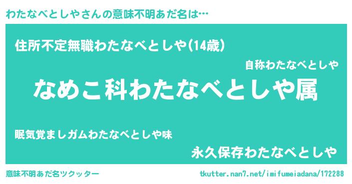| 女子向けラノベタイトル風あだ名 | 『わたなべとしやの玉の輿計画!』 |