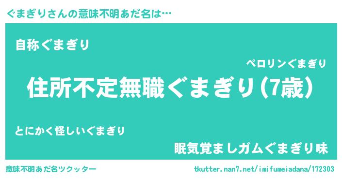 | 男性向けラノベタイトル風あだ名 | 『この素晴らしい世界にぐまぎりを!』 |