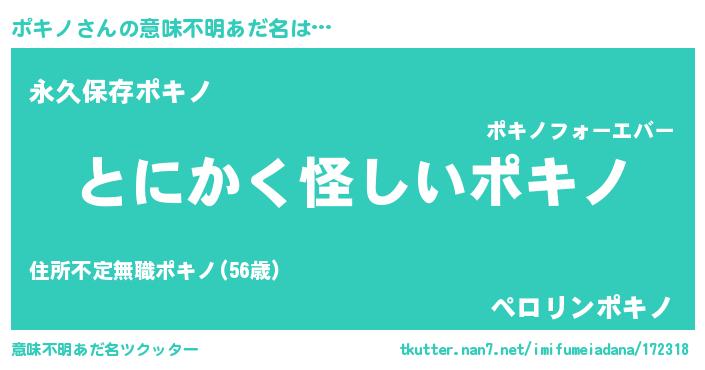| 男性向けラノベタイトル風あだ名 | 『ダンジョンにポキノを求めるのは間違っているだろうか』 |