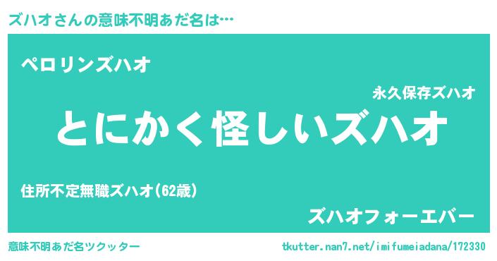 | ヘコむあだ名 | 『ズハ太郎』『ズハふぇ~』 |