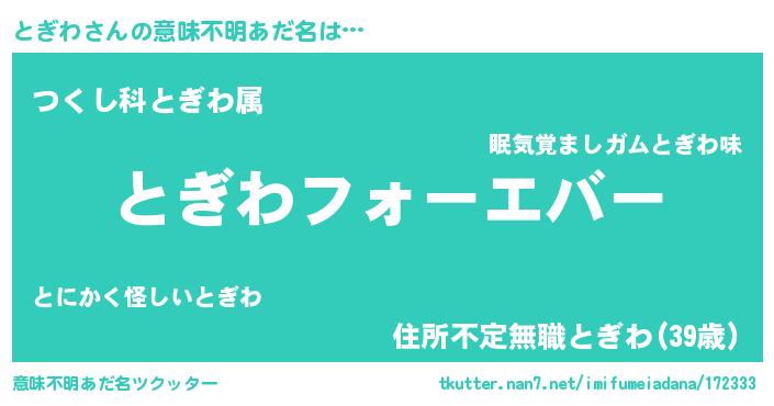 | ヘコむあだ名 | 『つくし』『とぎを』『とぎわ(笑)』 |