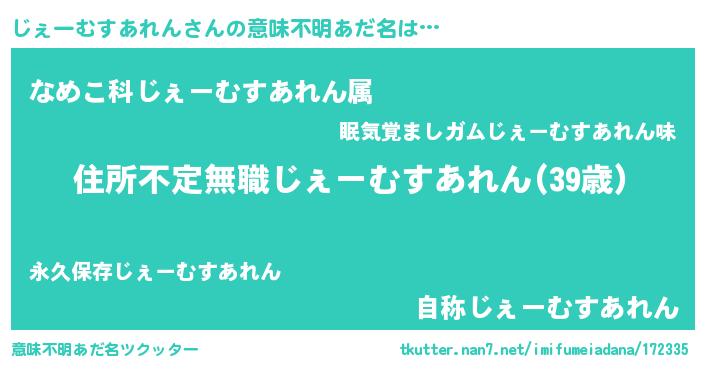 | 男性向けラノベタイトル風あだ名 | 『この素晴らしい世界にじぇーむすあれんを!』 |