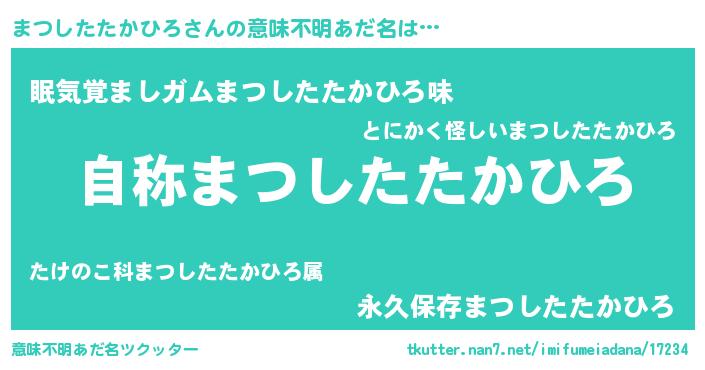 | ヘコむあだ名 | 『まつしたたかひろ(遠い目)』『まつ太郎』 |