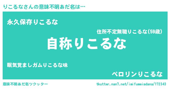 | 男性向けラノベタイトル風あだ名 | 『Re:りこるなから始める異世界生活』 |