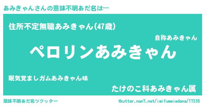 | 胡散臭い通販商品みたいなあだ名 | 『モテモテ間違いなし霊験あらたかなお札…その名も「あみきゃん」』 |