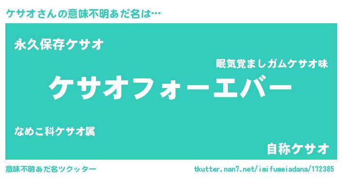 | 女子向けラノベタイトル風あだ名 | 『ケサオの雑貨屋さん』 |