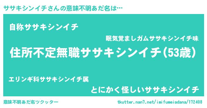 | 料理風あだ名 | 『ササキシンイチのカルパッチョ風』 |