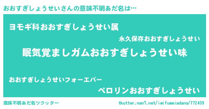 | ヒーロー風カッコイイあだ名 | 『慈愛の使者おおすぎしょうせい』 |