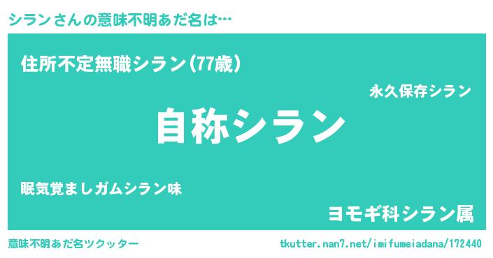| ヒーロー風カッコイイあだ名 | 『究極戦士シラン』『仮面シラダー』 |