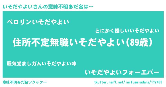 | 欧米人風あだ名 | 『アンジェラ・いそだやよい』 |
