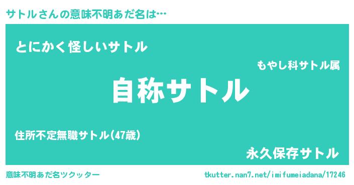 | 男性向けラノベタイトル風あだ名 | 『Re:サトルから始める異世界生活』 |