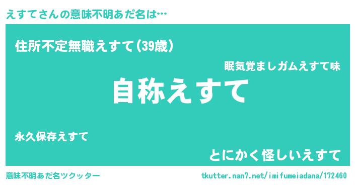 | 男性向けラノベタイトル風あだ名 | 『Re:えすてから始める異世界生活』 |