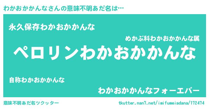 | ヒーロー風カッコイイあだ名 | 『スーパーワカオカカンナ』 |