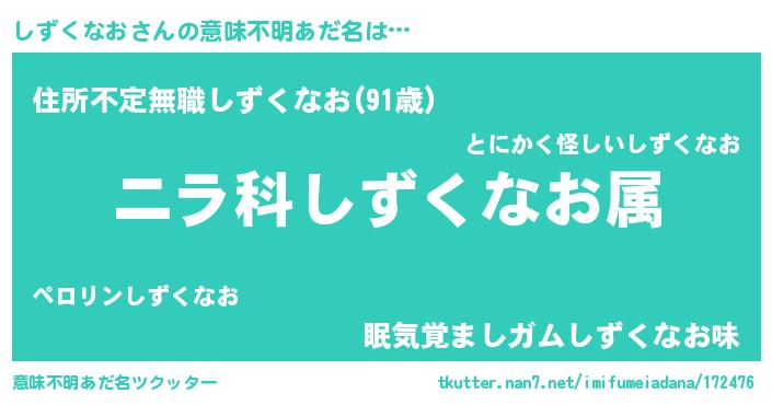 | 料理風あだ名 | 『しずくなおとほうれんそうの和風グラタン』 |