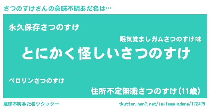 | 女子向けラノベタイトル風あだ名 | 『さつのすけの卵を拾いまして』 |