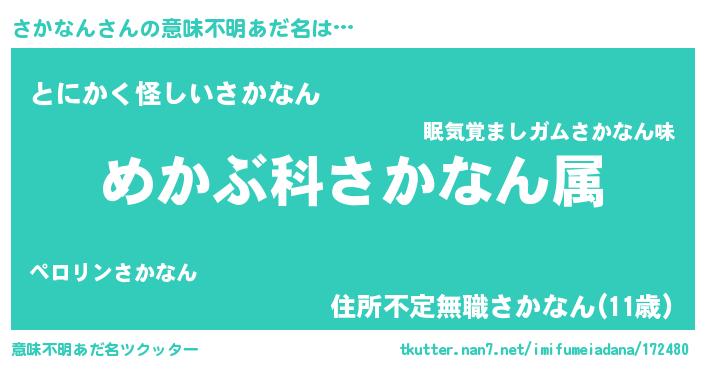 | 欧米人風あだ名 | 『さかなん・ステッグマイヤー』 |